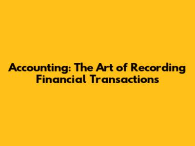 Accounting: The Art Of Recording Financial Transactions