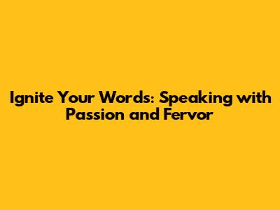 Ignite Your Words: Speaking With Passion And Fervor