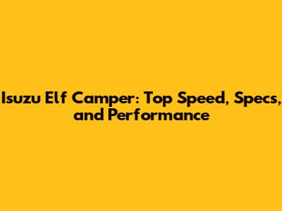 Isuzu Elf Camper: Top Speed, Specs, And Performance