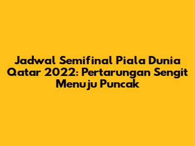 Oke, guys, ini dia yang paling ditunggu-tunggu! Buat kalian yang udah nggak sabar nonton pertarungan para raksasa, catat baik-baik jadwal semifinal Piala Dunia Qatar 2022. Perlu diingat, jadwal ini bisa aja sedikit bergeser tergantung penyesuaian dari FIFA, tapi secara umum, ini dia bocorannya: