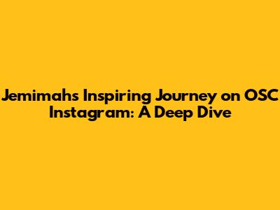 Hey guys! Today, we're diving deep into the inspiring journey of Jemimah, a standout personality on the OSC Instagram platform. If you've been following OSC Instagram, you've probably seen her posts, and trust me, there's so much more to her story than meets the eye. Jemimah’s journey is a testament to hard work, dedication, and the power of leveraging social media for positive impact. Let's explore what makes her journey so compelling and what lessons we can all learn from her.