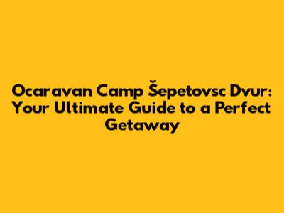 Ocaravan Camp Šepetovsc Dvur: Your Ultimate Guide