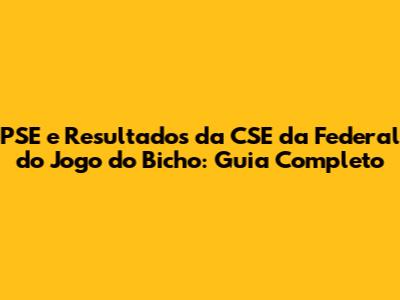 PSE E Resultados Da CSE Da Federal Do Jogo Do Bicho: Guia Completo