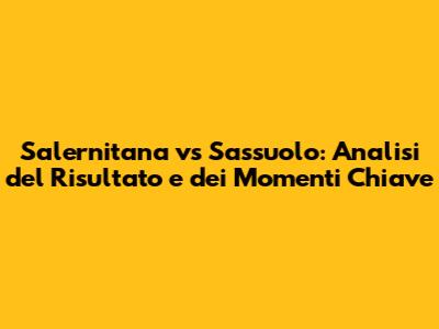 La partita tra Salernitana e Sassuolo non è stata solo una competizione, ma anche un evento che ha coinvolto i tifosi, gli appassionati e tutti coloro che amano il calcio. L'atmosfera nello stadio, l'entusiasmo dei fan e la tensione palpabile hanno contribuito a creare un'esperienza indimenticabile. Questo tipo di match offre l'opportunità di celebrare lo sport, condividere emozioni e rafforzare il senso di comunità. Analizzare ogni elemento, dal risultato alla reazione dei giocatori, ci permette di cogliere l'essenza stessa del calcio: un gioco di squadra fatto di strategia, passione e dedizione. La Salernitana e il Sassuolo hanno offerto uno spettacolo memorabile, e ora è il momento di esaminare i dettagli per capire come la partita si è evoluta e cosa ha portato alla vittoria.