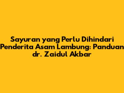 Dokter Zaidul Akbar sering banget menekankan pentingnya pola makan sehat dan alami. Beliau juga punya pandangan sendiri soal makanan yang baik dan buruk buat penderita asam lambung. Jadi, mari kita simak bersama-sama panduan dari beliau tentang sayuran yang perlu dihindari, supaya kita bisa menjaga kesehatan pencernaan dan kualitas hidup kita.