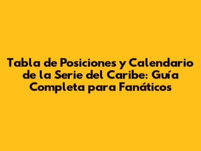 Tabla De Posiciones Y Calendario De La Serie Del Caribe