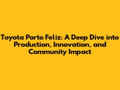 Toyota Porto Feliz: Production, Innovation, And Impact