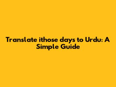 When translating "those days" into Urdu, the context matters. Here are a few common translations and when to use them: