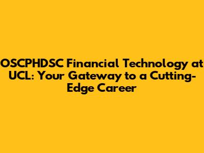 Unlock Your Future: OSCPHDSC Financial Technology At UCL