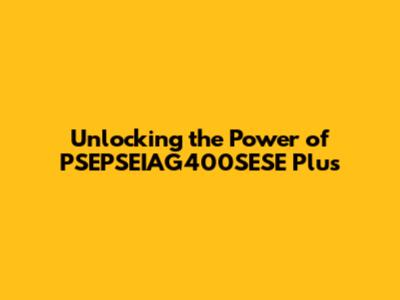 Unlocking The Power Of PSEPSEIAG400SESE Plus