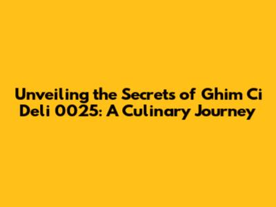 Unveiling The Secrets Of Ghim Ci Deli 0025: A Culinary Journey