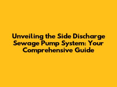 Unveiling The Side Discharge Sewage Pump System: Your Comprehensive Guide