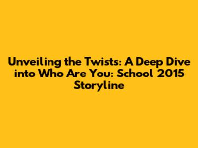 Unveiling The Twists: A Deep Dive Into 'Who Are You: School 2015' Storyline